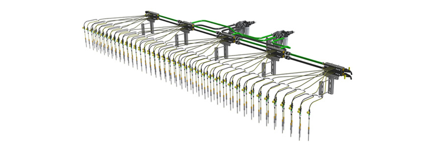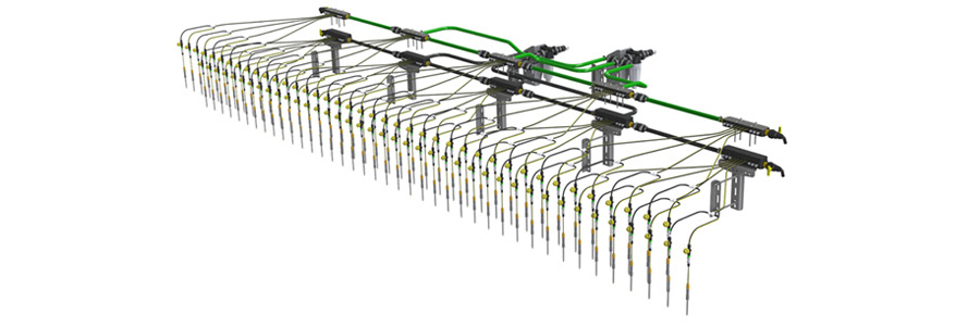The “Stacker” Kit is an integral part of our Liquid Systems. It provides custom components and plumbing to deliver/distribute liquid products in-furrow. The “Stacker” Kit is engineered to deliver the liquid product under controlled positive pressure all the way to the opener terminals with row to row accuracy and even distribution.